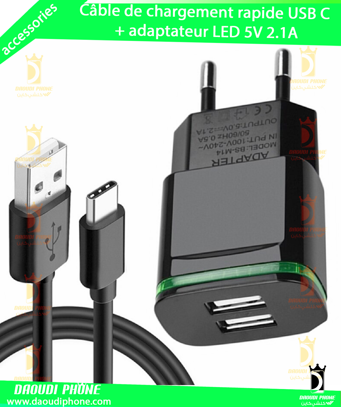 Câble de chargement rapide USB C + adaptateur LED 5V 2.1A, pour tablette Lenovo Yoga Tab 3 Plus 10.1 Xiaommi redmi note 9 8 9s 9t 10 poco X3 M3